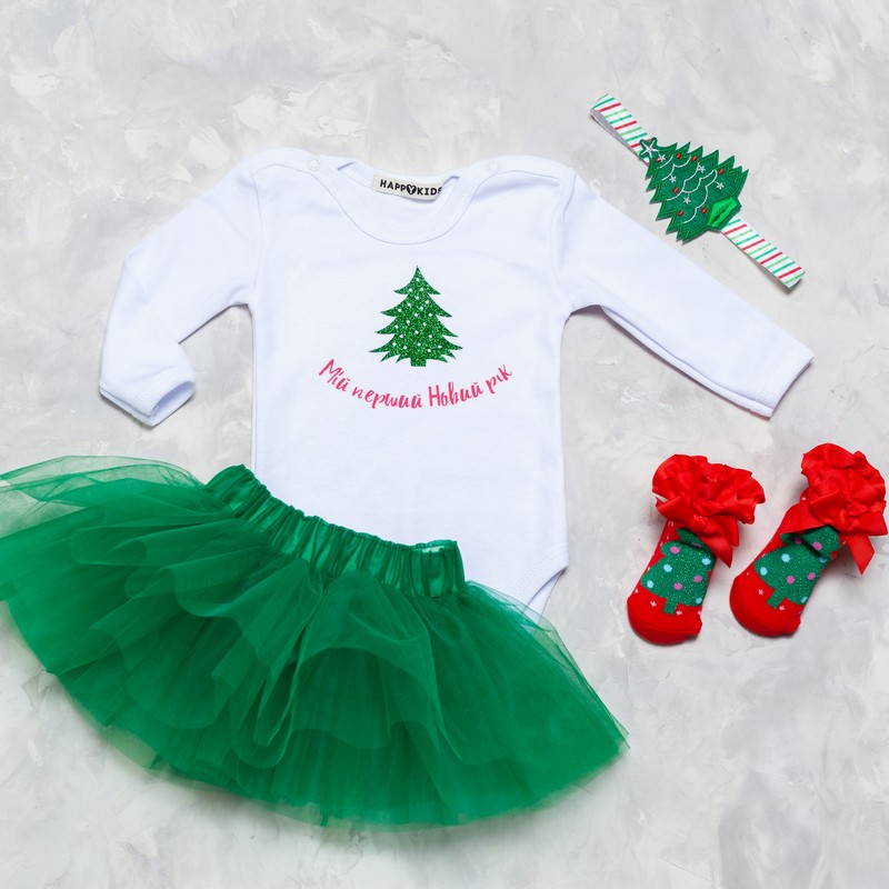 Боди новогодний с елкой "Первый Новый год"