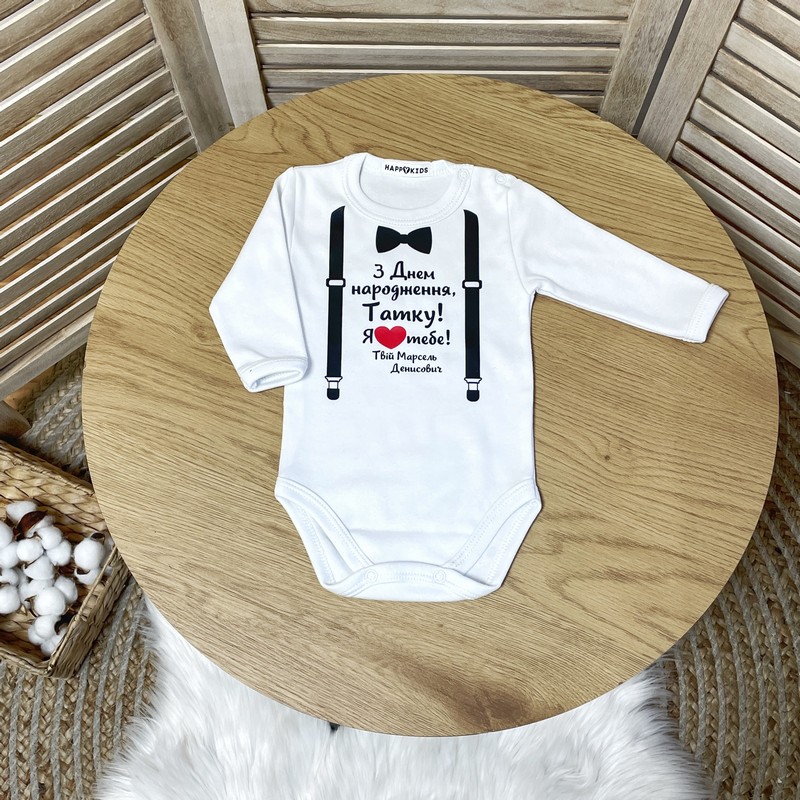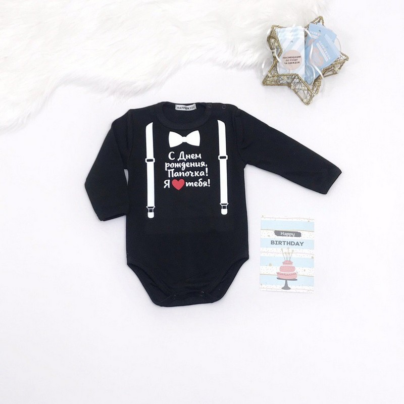 Боди-поздравление "С Днем рождения, Папочка" подтяжки с бабочкой