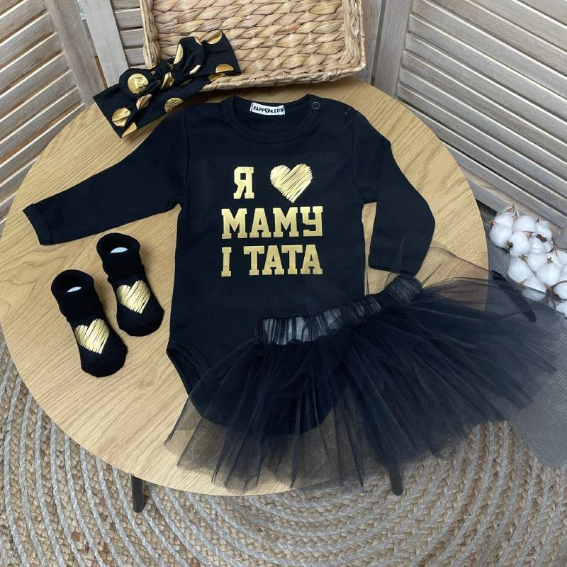 Боди с золотой надписью "Я люблю маму и папу"