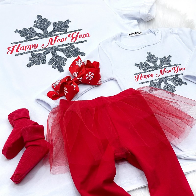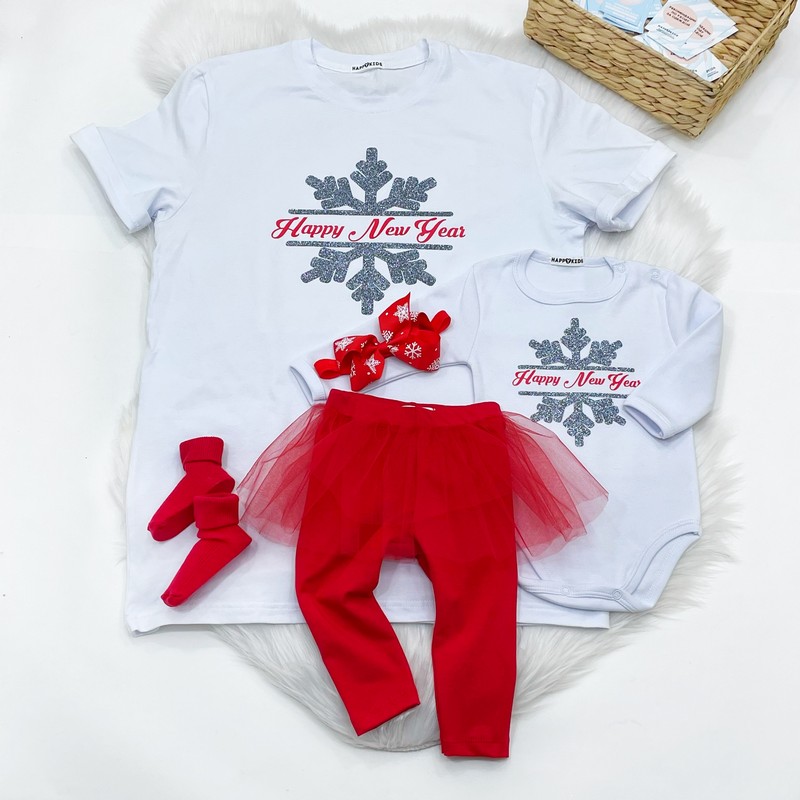 Новогодние футболки в одном стиле для мамы и дочери с оригинальной надписью – лучший выбор для всей семьи идеально подходит одежда на первый Новый год ребенка. Также отличная идея для подарка, семейной фотосессии или новогоднего семейного праздника.