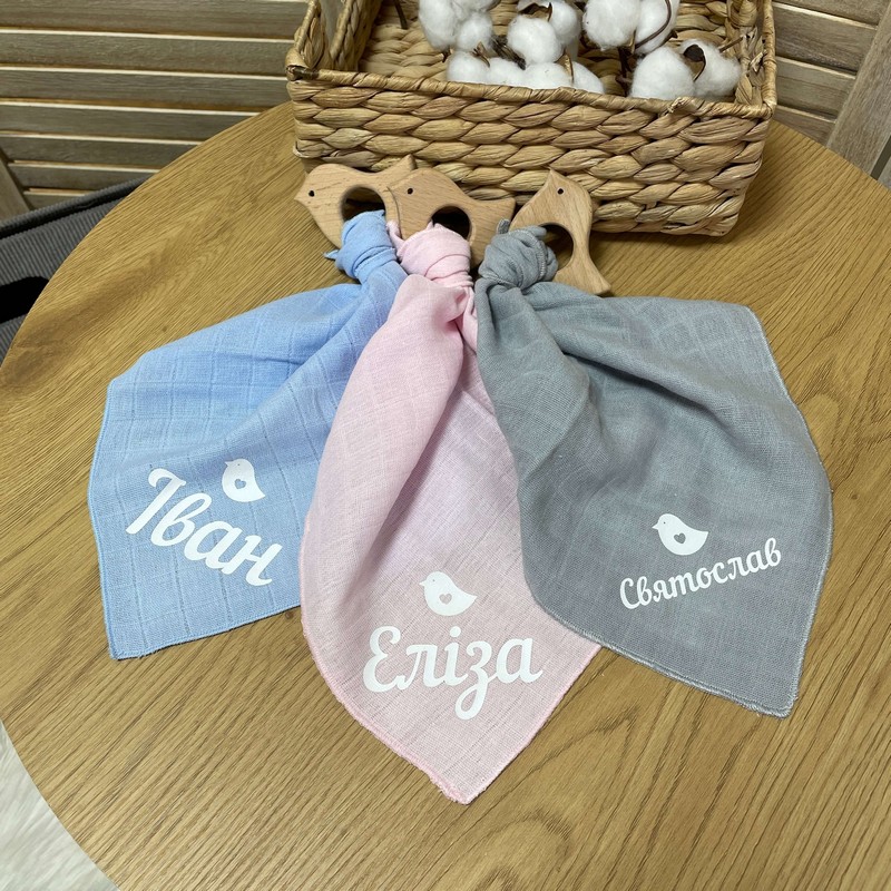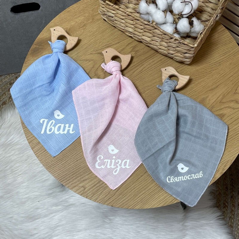 - Именный грызунец придает персональности и делает его отличным от других, имеет мягкий и приятный на ощупь платок муслин;