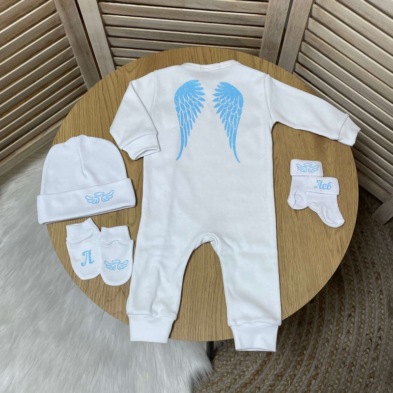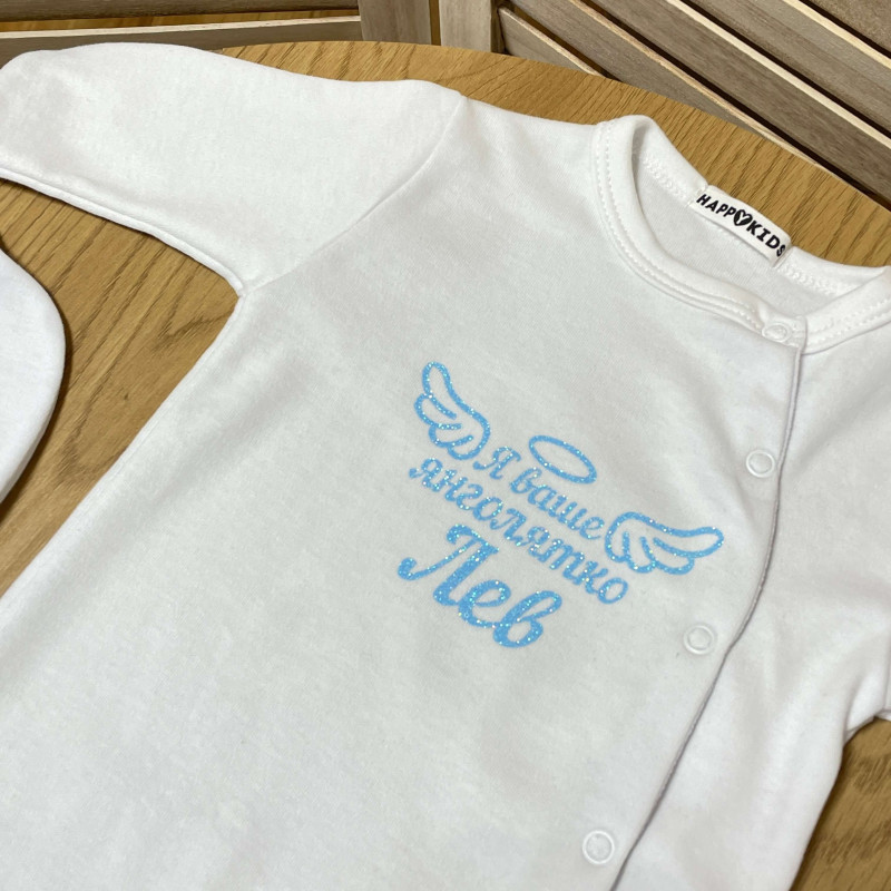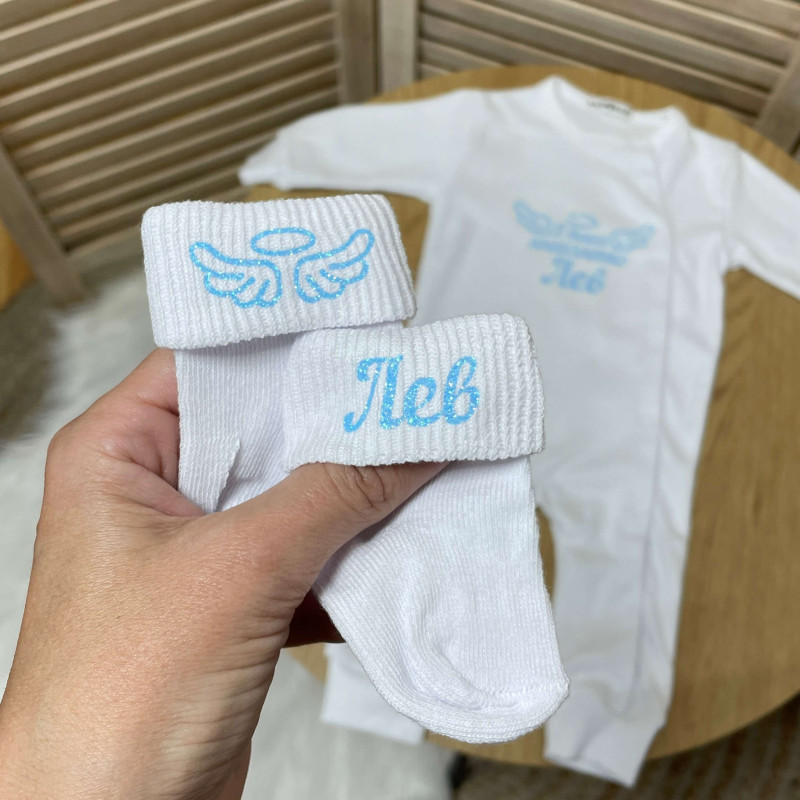 - Носки с именем малыша/нимб с крыльями на другом