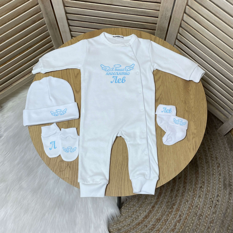 Кожен елемент набору оздоблений ніжними мотивами та елегантним написом "Я ваше янголятко", що додає натхнення та тепла.