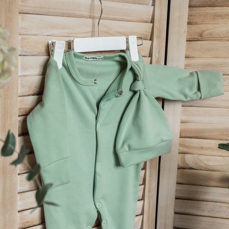 Комплект для новорожденного с шапочкой оливковковый