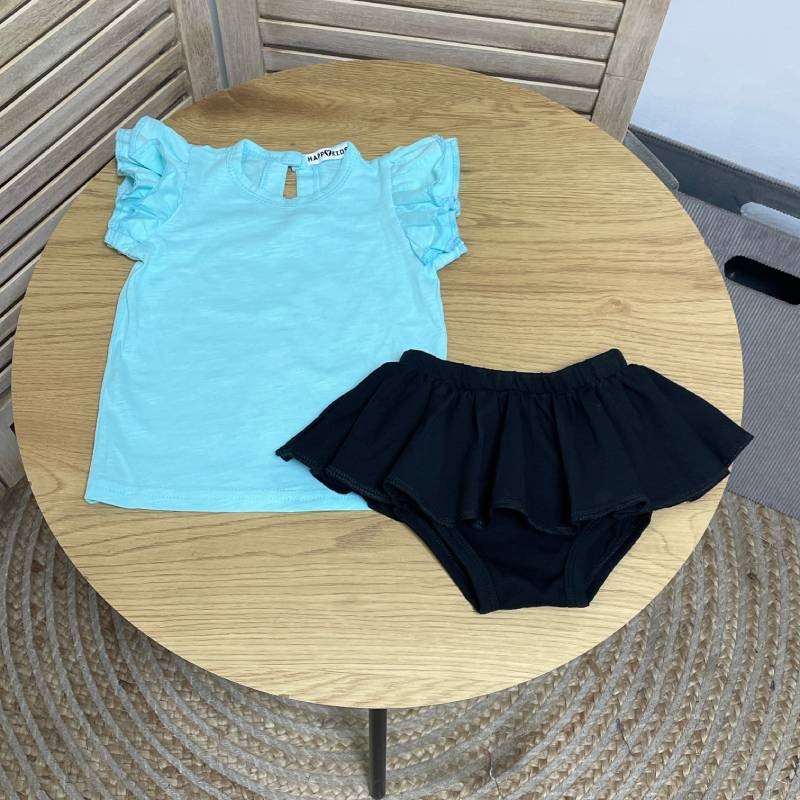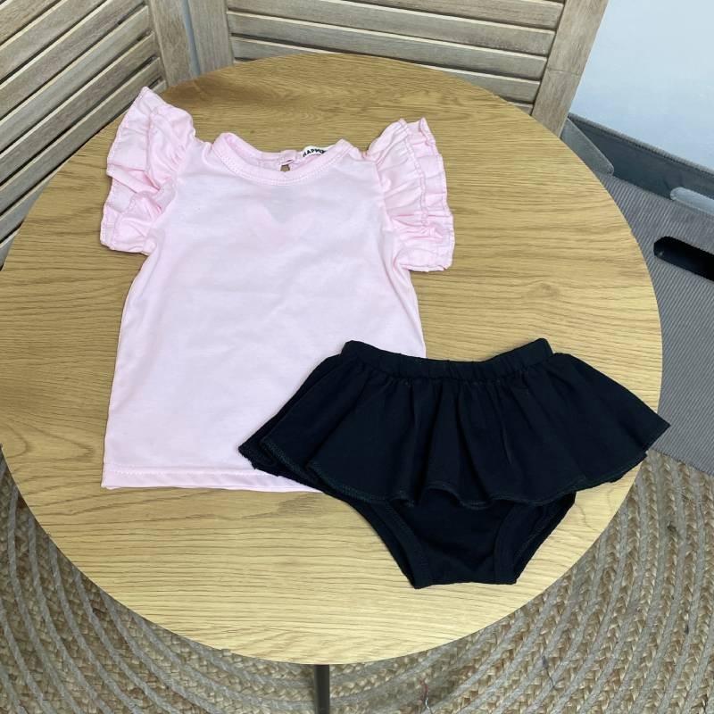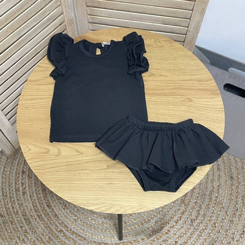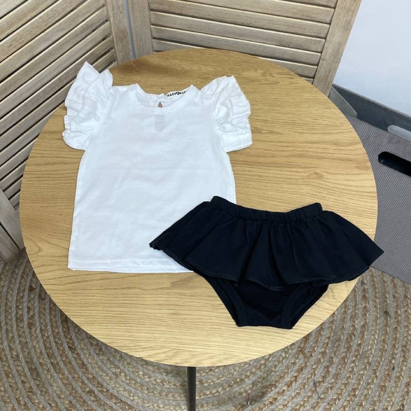 Летний комплект для девочки от 0 до 1 года – стильный и удобный комплект, состоящий из однотонной футболки с крылышками и милых трусиков. Ваш малыш будет выглядеть неотразимо и чувствовать себя комфортно в любую летнюю погоду!