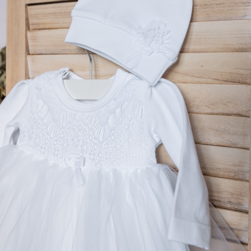 Нарядный комплект для новорожденной девочки - прекрасно подойдет на выписку в роддом, крестины, любой другой праздник.