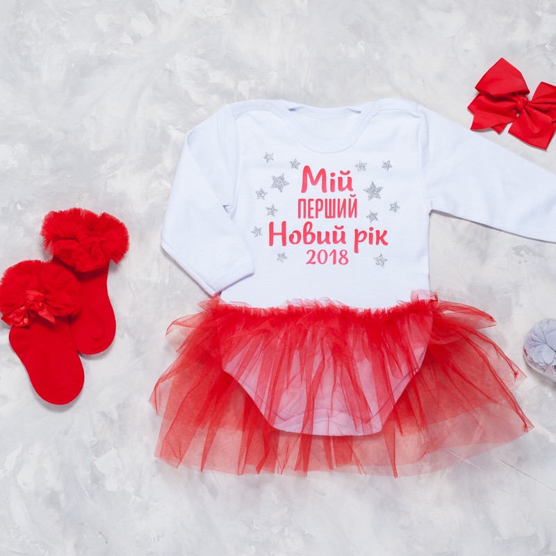 Стильный и яркий комплект с боди девочкой на первый новый год и рождество!