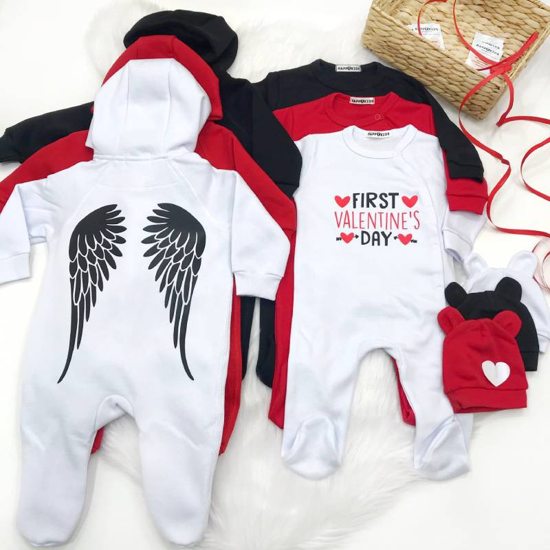 Этот комплект создан специально для сладкого празднования Дня святого Валентина вместе с вашим малышом. Нежный и стильный, он подчеркнет важность первого праздника любви в жизни новорожденного.