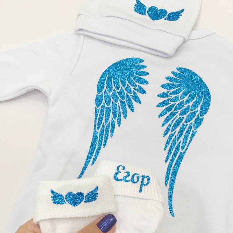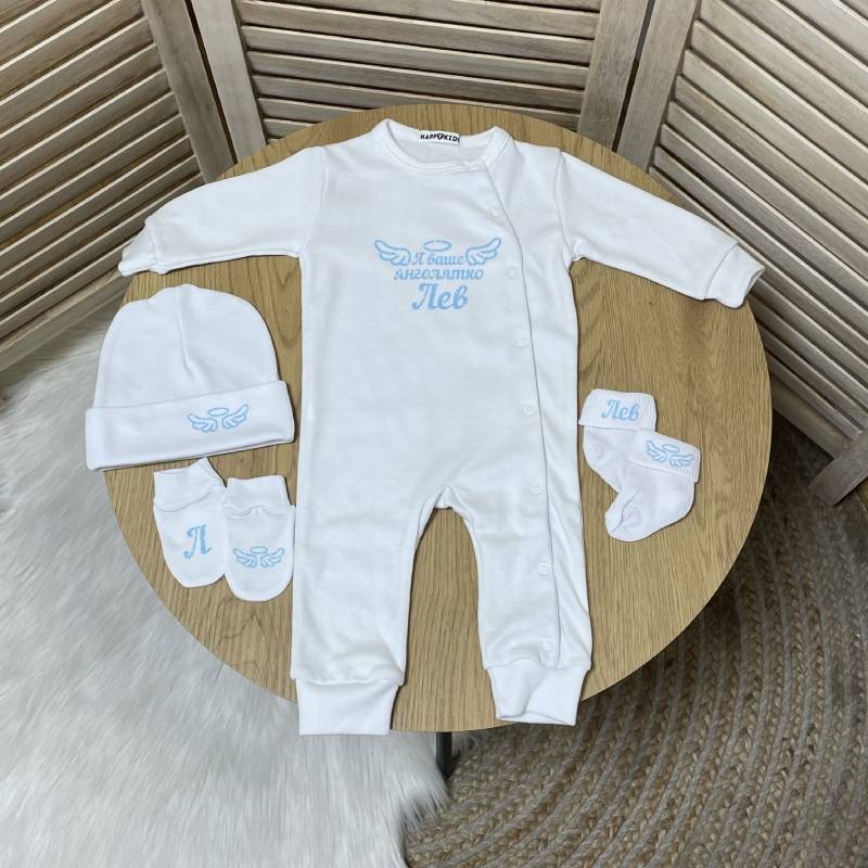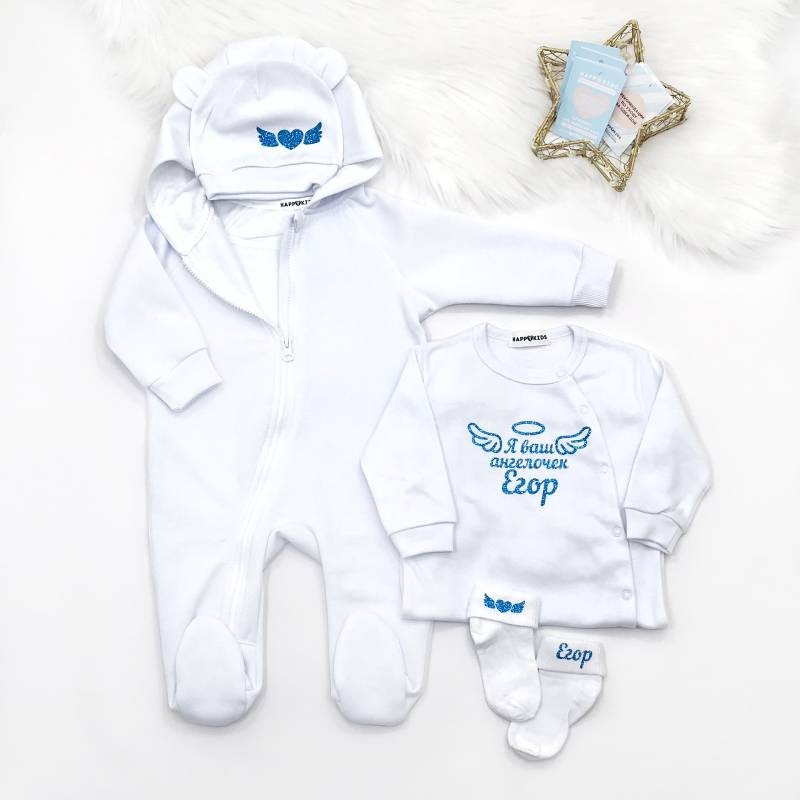 - Слип с надписью "Я ваш ангелочек" и именем ребенка.