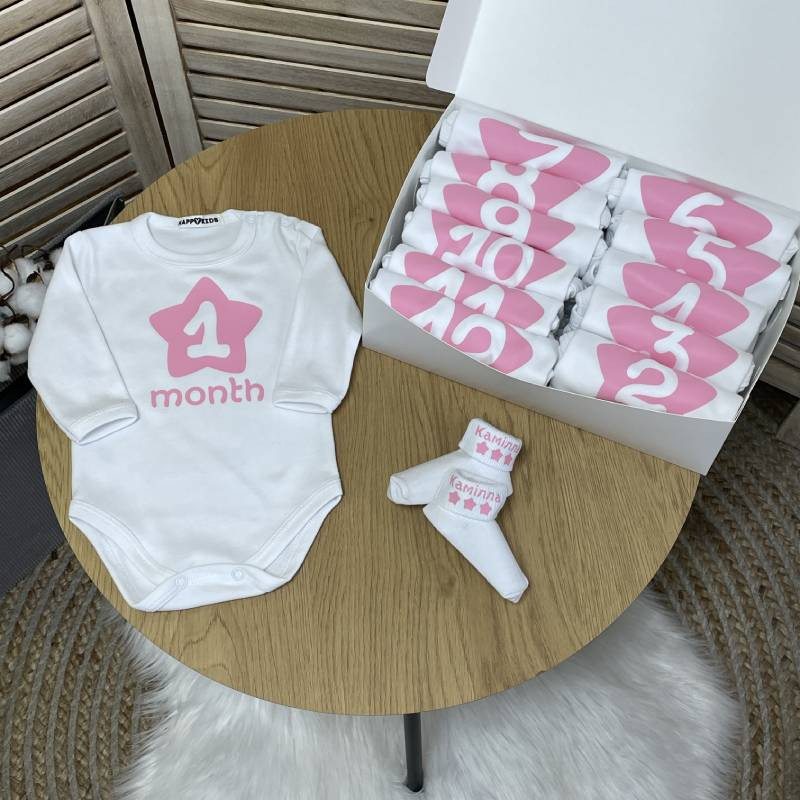 Набор 12 боди по месяцам "Звездочка" однотонный