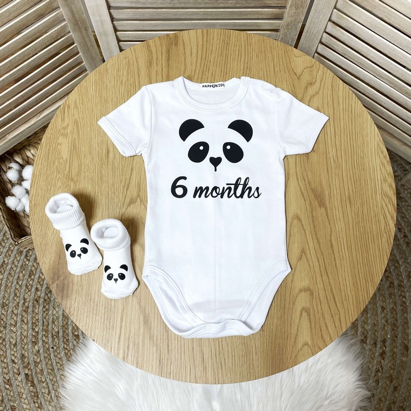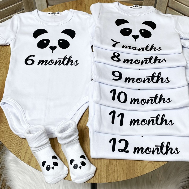 Набор 12 боди для фото по месяцам "Панда" однотонный