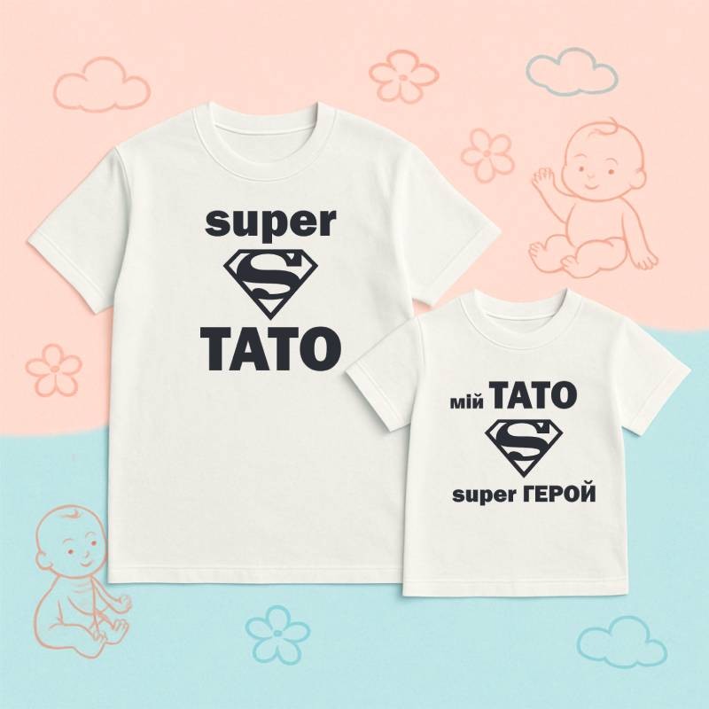 Набор футболок с надписью "Super папа/мой папа superгерой"