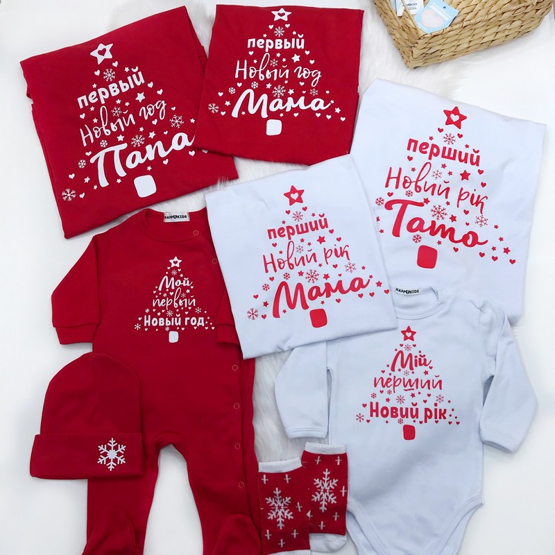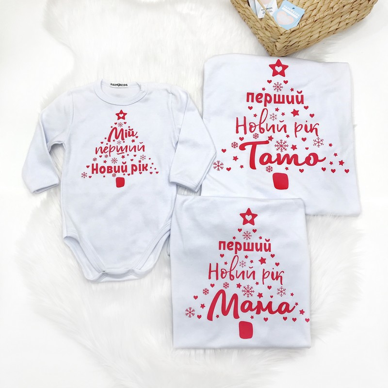 Набор футболок новогодний "Первый Новый год Мама, Папа" с боди