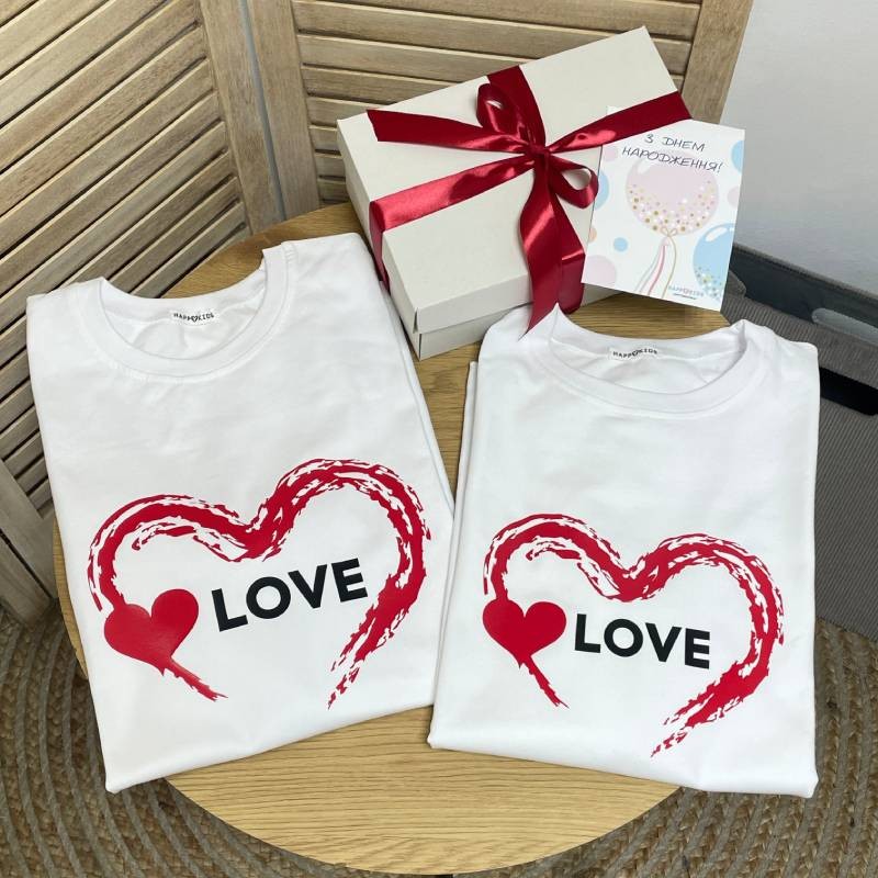 Набор парных футболок с сердечками и надписью "Love"