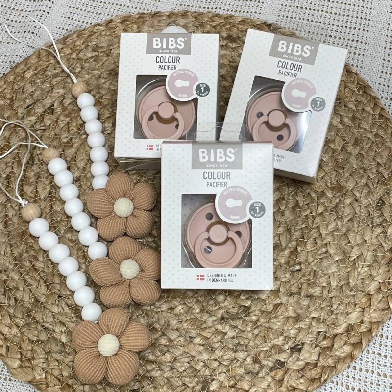 Характеристика: Набор включает пустышку от бренда BIBS и силиконовый держатель в форме цветочка, что обеспечивает комфорт и удобство в использовании.