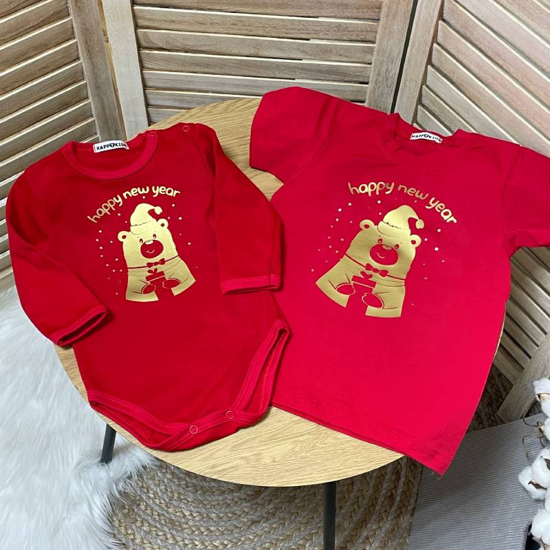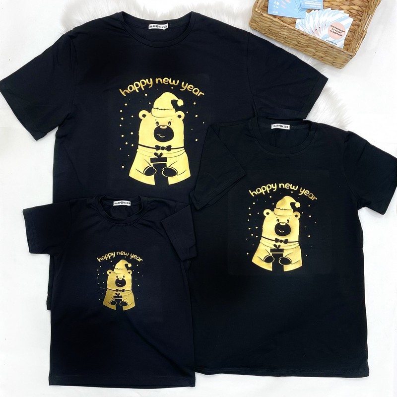 Набор семейных новогодних футболок "Happy New year" с мишкой