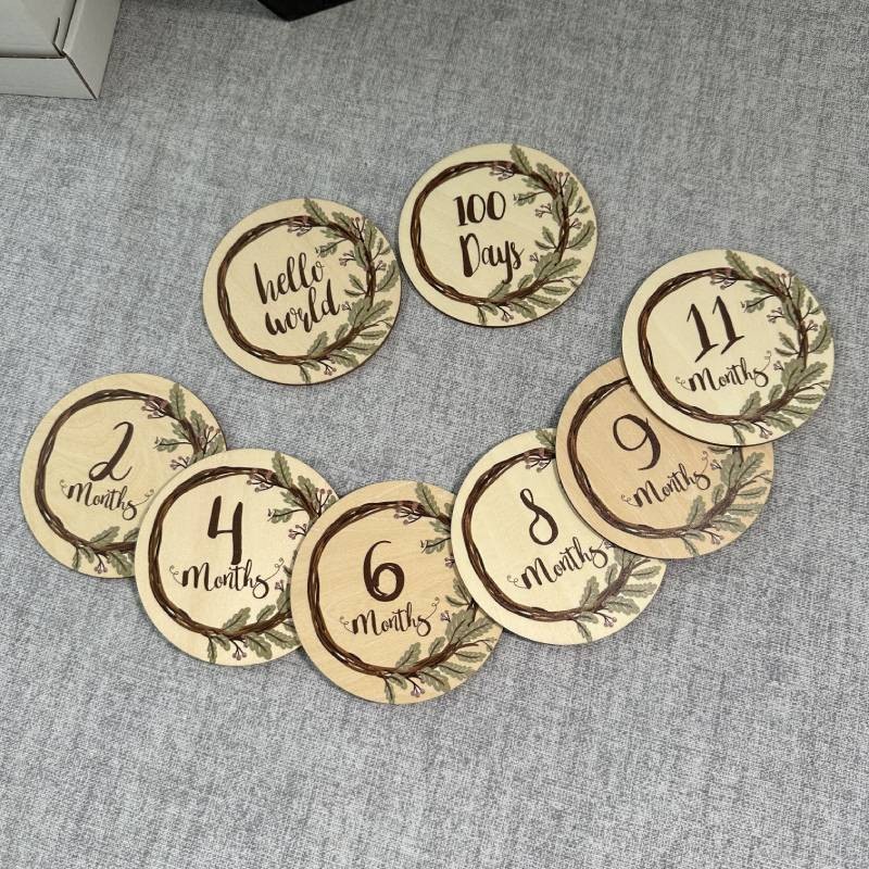 Набор из деревянных карточек для ежемесячных фотосессий "Hello world"