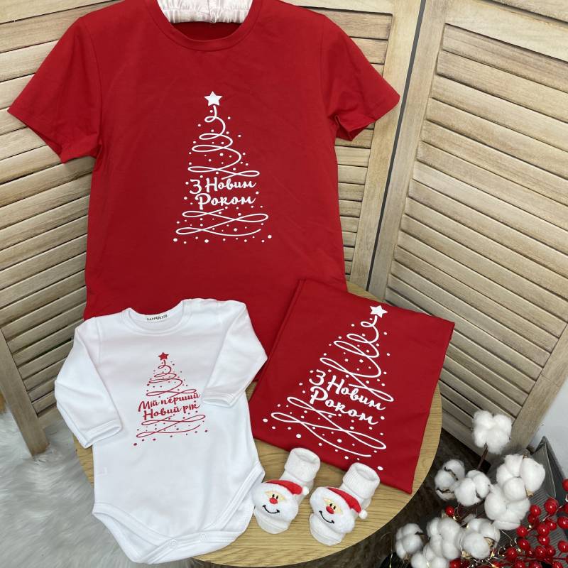 Набор семейных футболок "С Новым годом" с рисунком елки