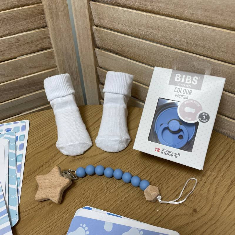 Создайте волшебные воспоминания о первых месяцах жизни малыша с нашим подарочным набором для новорожденного. В нем сочетаются практичные и стильные вещи для малыша, а также карты для фото в нежных голубых акварельных оттенках, которые помогут зафиксировать самые важные моменты первых дней и месяцев жизни.