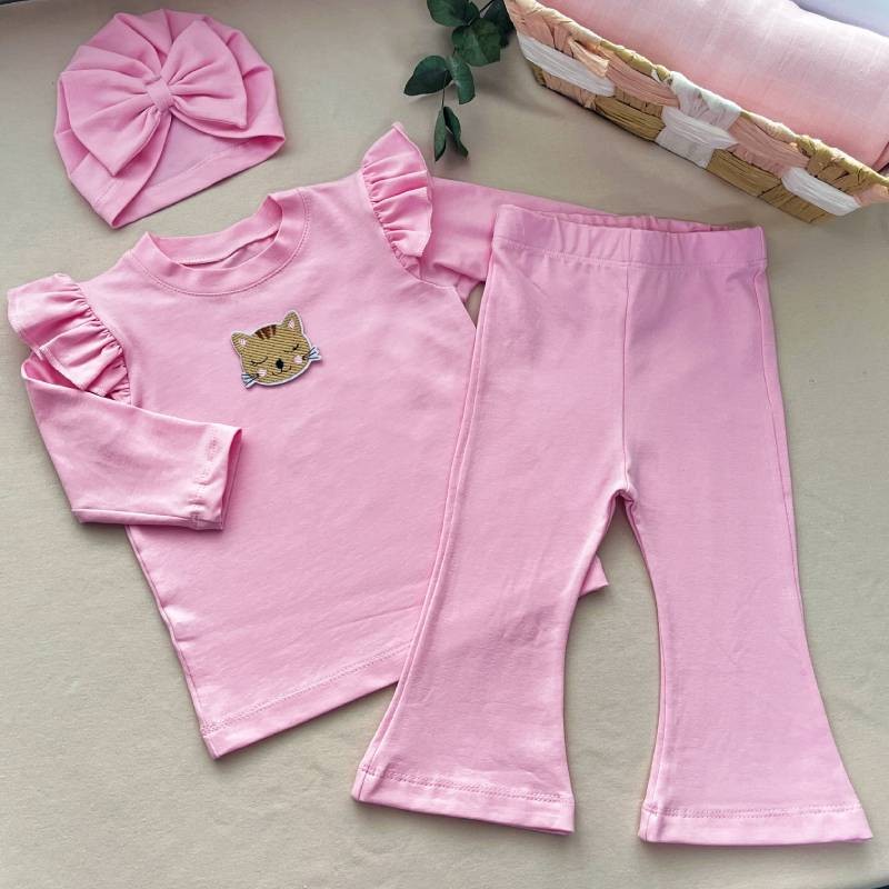 Нежный и модный комплект для маленькой леди – стильный розовый костюм с лонгсливом и лосинами-клеш. Идеально подойдет для первых фотосессий, прогулок и ежедневного комфорта.