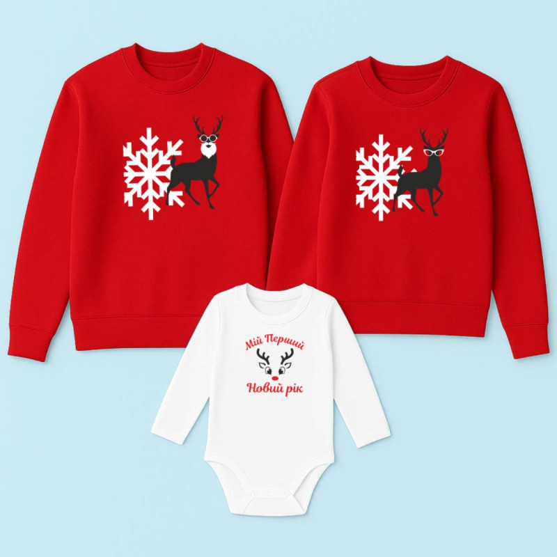 Семейный комплект из свитшотов и боди с новогодними оленями – стильный family look для праздников и зимних фотосессий. Такой комплект – отличная идея для семейного подарка и создания праздничного настроения.