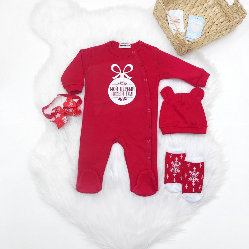 Слип новорожденному на новый год "Мой первый новый год" новогодняя игрушка