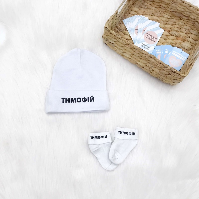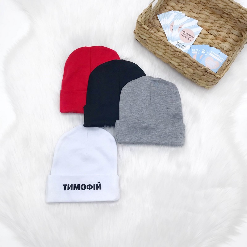 Іменна шапка дитини виготовлена з натуральної тканини (бавовна 100% інтерлок)