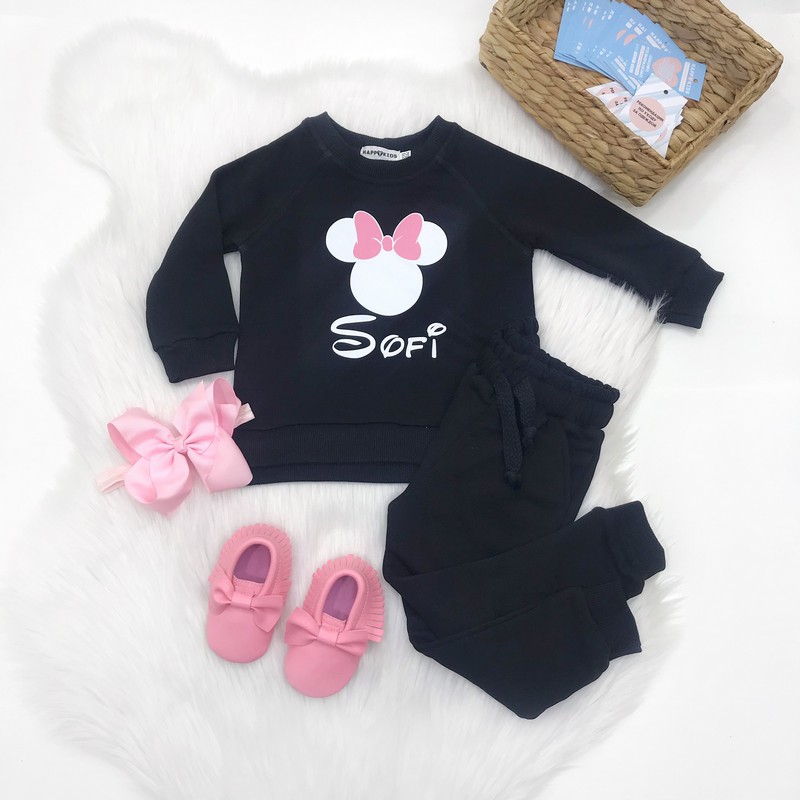 Базові якісні бавовняні світшоти дівчаткам з зображенням Мінні маус та іменем дитини