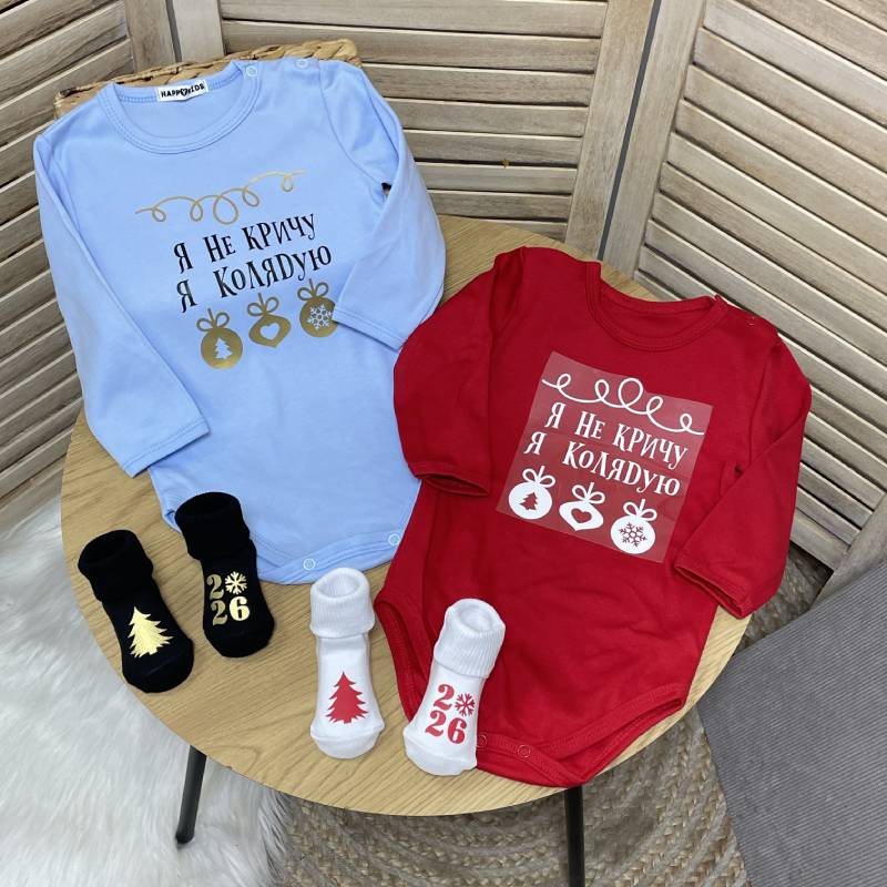 Святковий боді з прикольним написом "Я не кричу, я колядую"